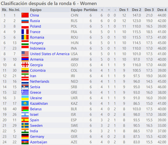 China y Rusia encabezan la clasificación con 6 victorias, bonito duelo el que espera para decidir el triunfador.