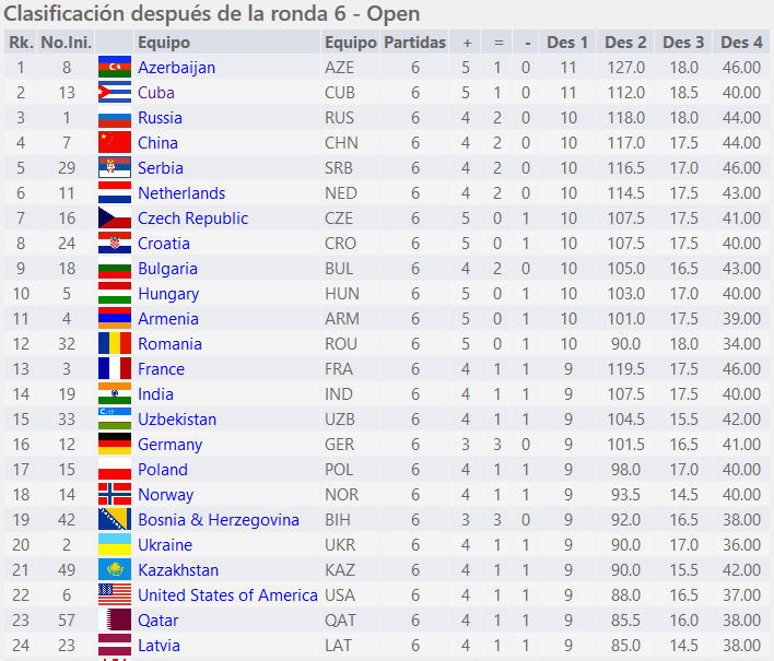 Tras pasar el ecuador del torneo Cuba se mantiene en la pelea por el podio, el equipo cubano sólo ha cedido un empate en lo que llevamos de Olimpiada, con un Reynaldo Ortiz que está puntuando muy bien en el cuarto tablero.